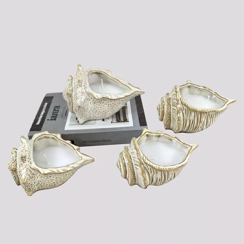 هذا صاحب شمعة الصدف الخزفية من Byf Arts and Crafts Co. مصنوع من السيراميك عالي الجودة ، وهو يحاكي المنحنيات العضوية والسطح المحكم من الصدف الطبيعي. تتميز كل قطعة بحواف متموجة حساسة ، وترابيس خفية ، وحتى الزخارف المذهبة ، والتقاط جمال الحياة البحرية بتفاصيل رائعة.
