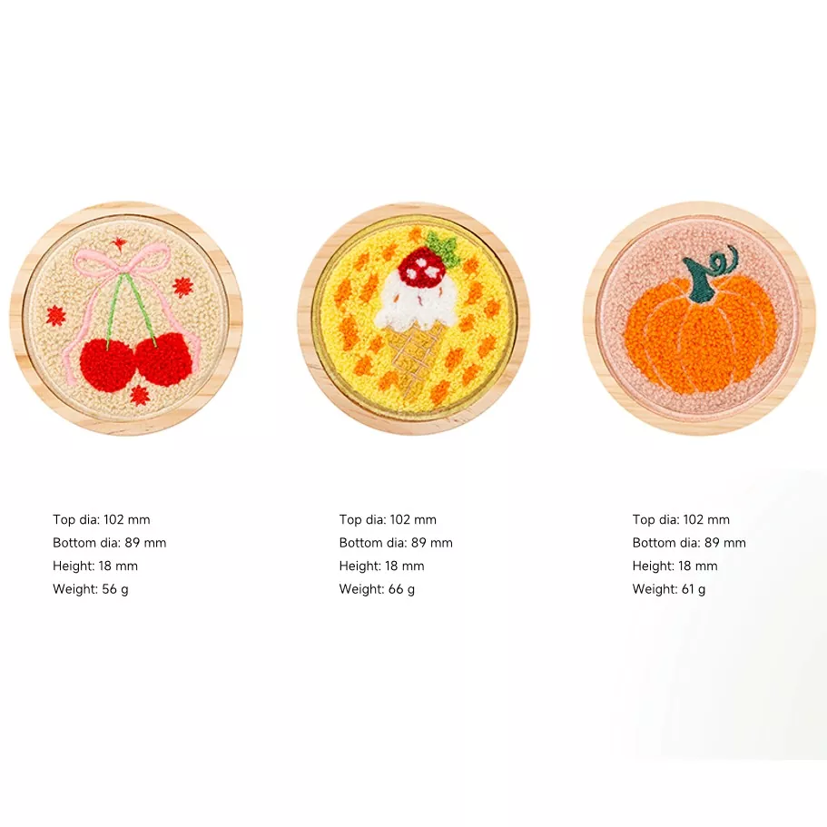 أغطية الخشبية الخشبية الصديقة للبيئة اللطيفة المصنوعة يدويًا مصنوعة من قطعة قطعة باستخدام تقنية التطريز. إنها تتميز بمجموعة واسعة من التصميمات ، كل واحدة حية ونابضة بالحياة - سوف تكون مدللة للاختيار. نمط الكرز نابض بالحياة ورائع باللون الوردي والأحمر ، حلوًا تقريبًا من خلال النظر إليه. نمط الآيس كريم ، مع مزيجه الأصفر والأبيض النابض بالحياة ، نظيف ومنعش ، مما يجلب برودة تشبه الصيف. غطاء اليقطين هو برتقالي نابض بالحياة ، يجسد دفء الخريف. إن لهجات الكعك الحمراء والأزرق النابضة بالحياة وحلوة. نمط الكوكتيل هو وردي رومانسي ، آسر تماما. نمط الليمون ، بأصفره الزاهي وتلميحات من الأخضر ، ينضح بالحيوية النابضة بالحياة والحلوة.
